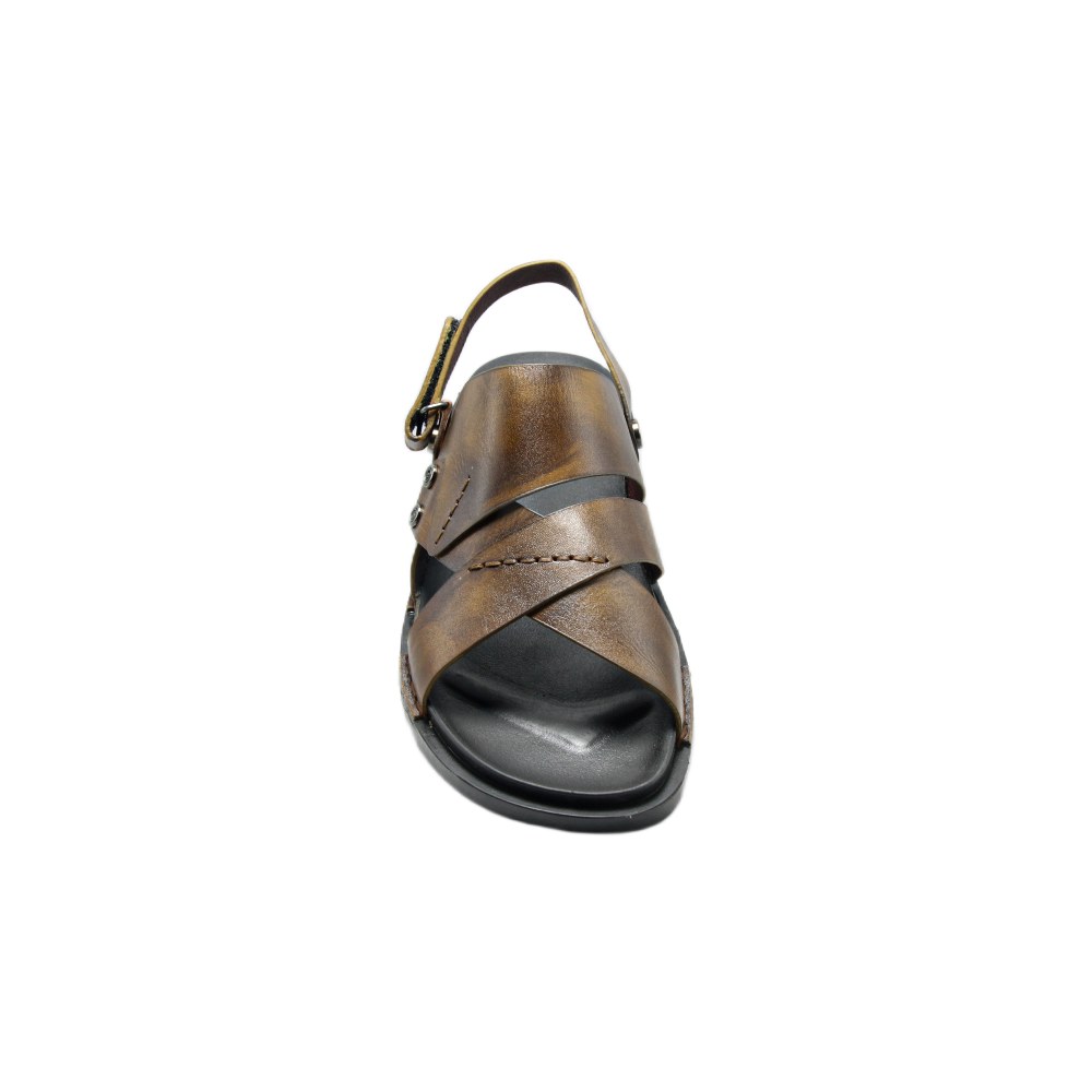 Step into a world of sophisticated comfort with these heritage-inspired sandals. Featuring a unique distressed, burnished finish and an elegant cross-strap design, this pair captures a vintage aesthetic while maintaining a modern edge. Perfect for those who appreciate the finer details of craftsmanship, these sandals transition effortlessly from a day at the office to an evening social gathering. The deep, rich tones and metallic rivet accents offer a masculine look that pairs perfectly with both ethnic attire and casual western wear.