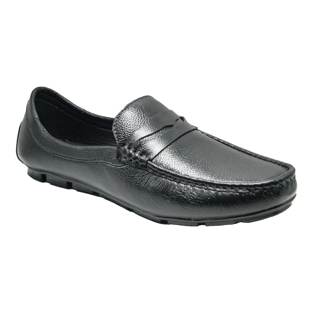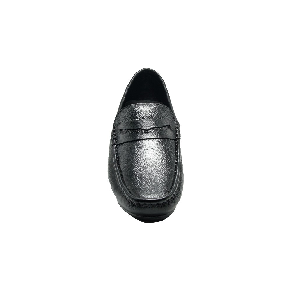 Redefine your professional wardrobe with these meticulously crafted black loafers. Featuring a distinct pebble-grain texture and a classic penny-strap detail, these shoes offer a rich, tactile aesthetic that stands out in any boardroom. The streamlined silhouette and elegant moc-toe stitching provide a sharp, clean look, while the soft interior ensures breathable comfort throughout the longest workdays. Whether paired with a tailored suit or smart trousers, these loafers represent the pinnacle of executive style and reliability.