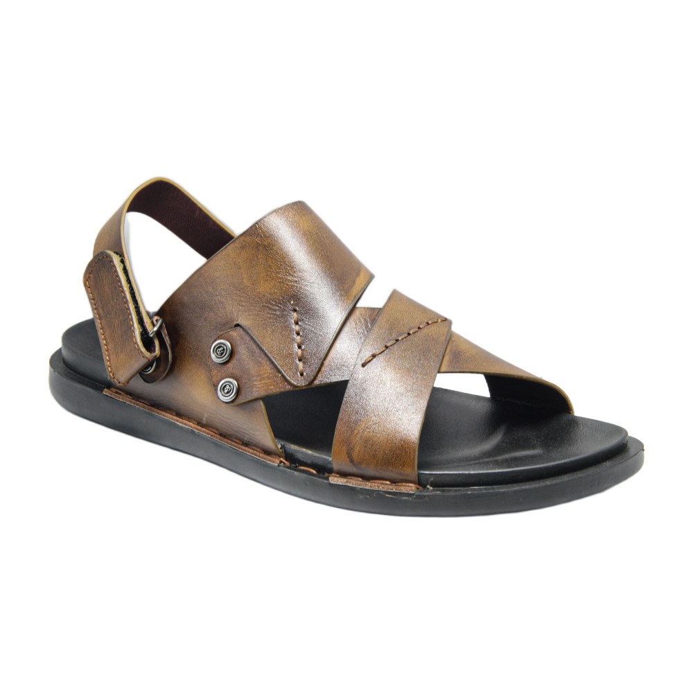 Step into a world of sophisticated comfort with these heritage-inspired sandals. Featuring a unique distressed, burnished finish and an elegant cross-strap design, this pair captures a vintage aesthetic while maintaining a modern edge. Perfect for those who appreciate the finer details of craftsmanship, these sandals transition effortlessly from a day at the office to an evening social gathering. The deep, rich tones and metallic rivet accents offer a masculine look that pairs perfectly with both ethnic attire and casual western wear.