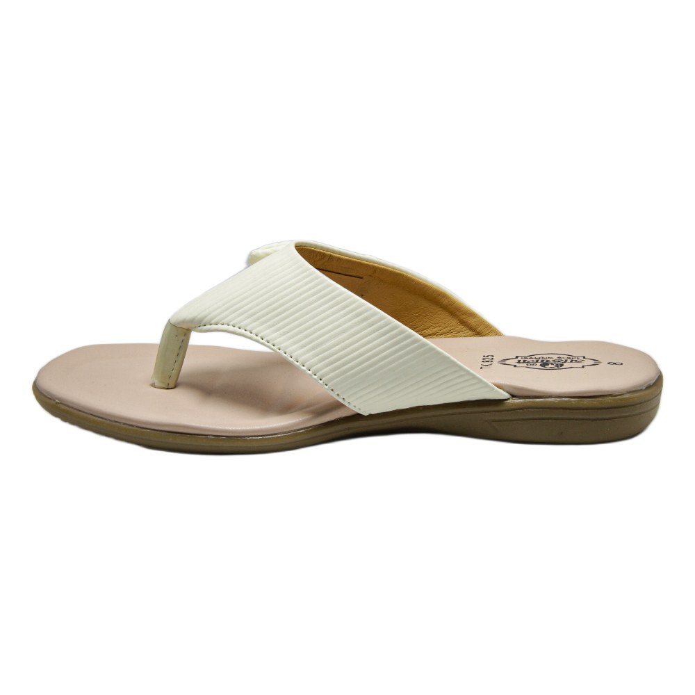 Step into effortless style with these sophisticated off-white thong sandals. Designed with a unique linear texture on the straps, this pair features a beautifully structured bow-inspired accent. The center is adorned with a gold-tone "H" emblem encrusted with shimmering crystals, offering a high-end boutique aesthetic. Whether you are pairing them with traditional ethnic wear or a relaxed casual outfit, these sandals provide a polished look with the all-day comfort of a flat profile.